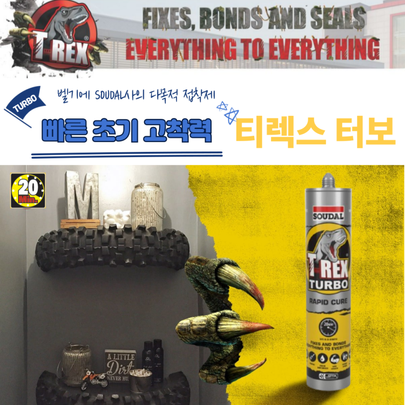 SOUDAL 건.습식 겸용 강력한 멀티 쾌속 접착 실리콘본드 "티렉스-터보"출시!