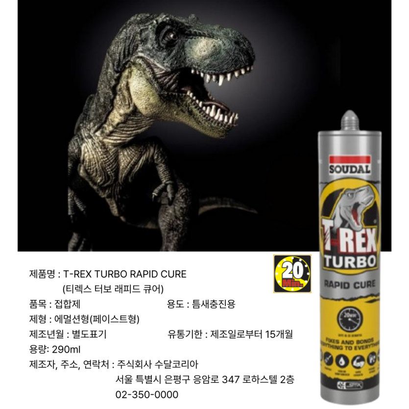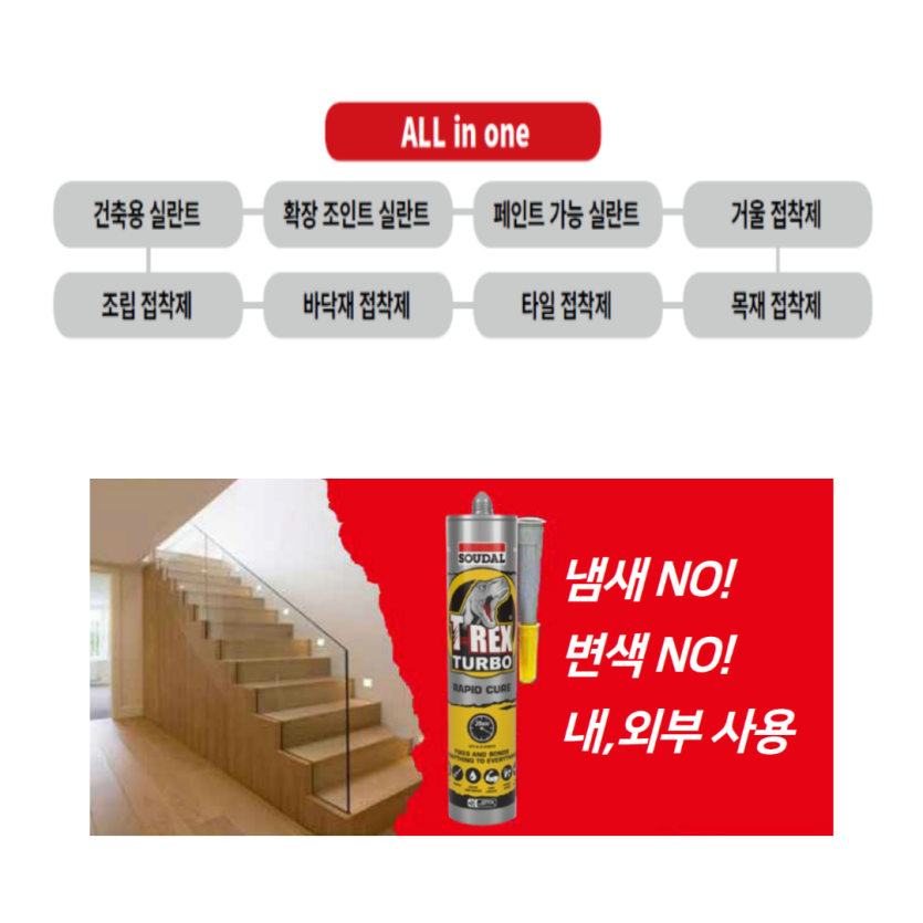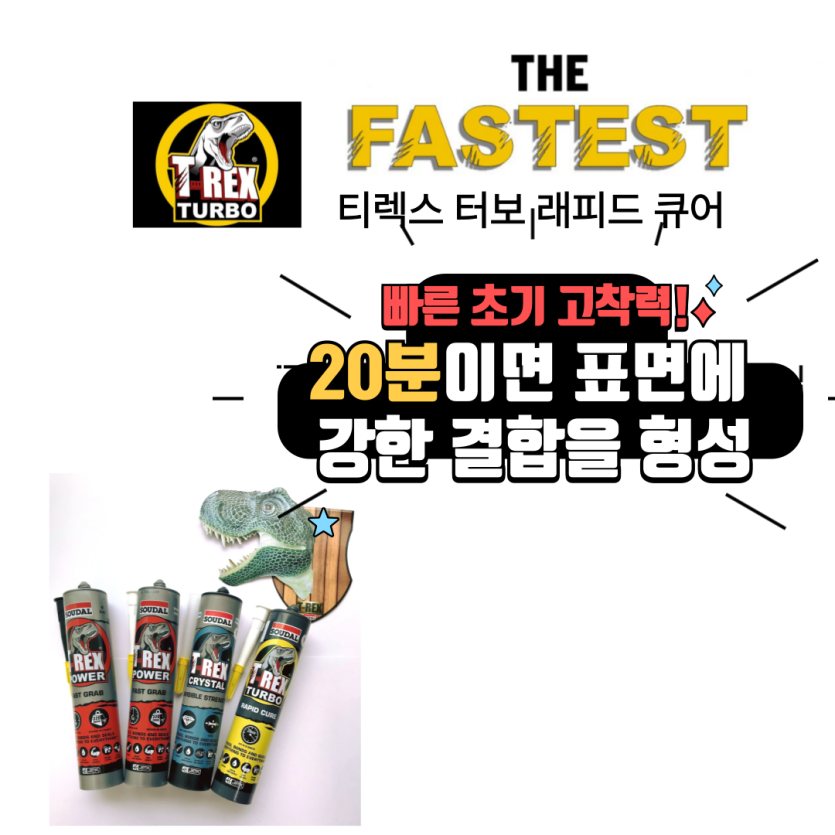 SOUDAL 건.습식 겸용 강력한 멀티 쾌속 접착 실리콘본드 "티렉스-터보"출시!